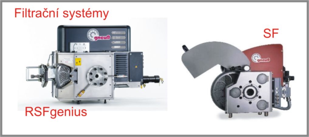 Firma Gneuss Kunststofftechnik GmbH vyrábí a dodává filtrační systémy taveniny, sondy na měření tlaků a teplot, on-line viskozimetry, speciální šneky a extrudery pro účinější evakuaci. Všechna zařízení jsou podpořena množstvím vlastních patentů.