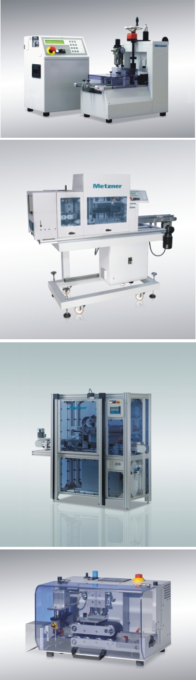 Vysekávací automaty a automaty na zpracování profilů - Firma Metzner vyrábí a dodává automaty na zpracování profilů pro automobilový průmysl. Tyto automaty mohou profily v přesných místech navrtávat, vysekávat otvory pro závěsy dveří, kontrolovat délku, upravovat tvar řezu a vyznačovat montážní body a to včetně ko-extruzních profilů pryž-plast a profilů s kovovou výztuží. Automaty umí najít nejvýhodnější místo řezu či seku vzhledem ke kovové výztuži a zároveň řez v jednom kroku zabrousit tak, aby z konce profilů nevyčnívaly kovové části. Tyto automaty mohou pracovat přímo v linkách nebo jako samostatné dokončovací stanice.